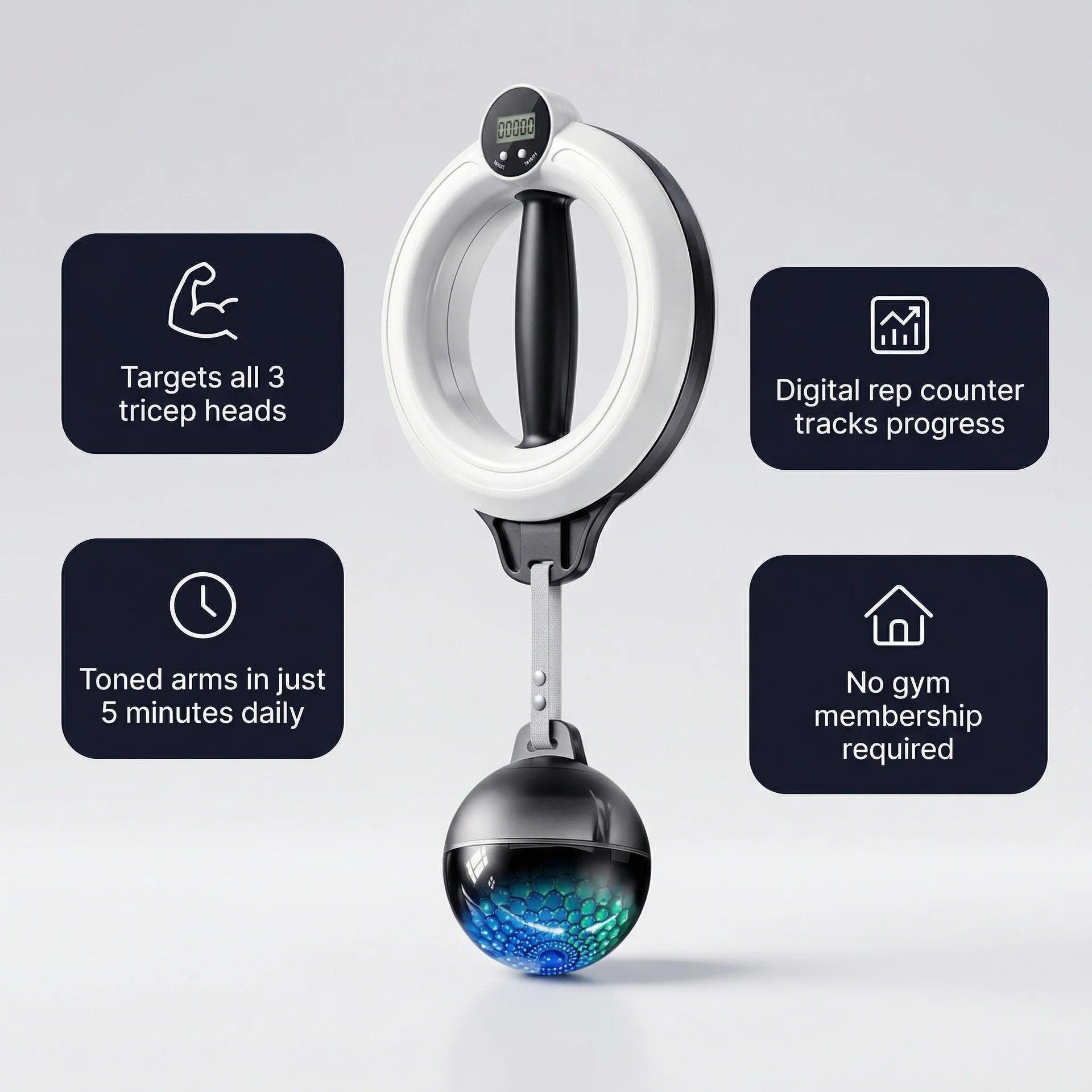 The rotational movement eliminates the joint-crushing impact of push-ups, the elbow strain of tricep kickbacks, and the shoulder stress of overhead extensions.